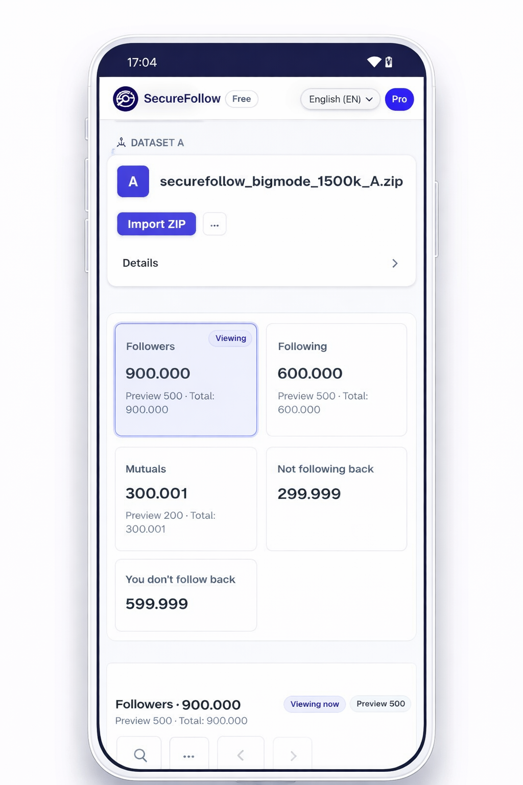 Många appar loggar in och automatiserar åtgärder. SecureFollow loggar inte in och automatiserar inget: analys av ZIP lokalt. Läs mer.